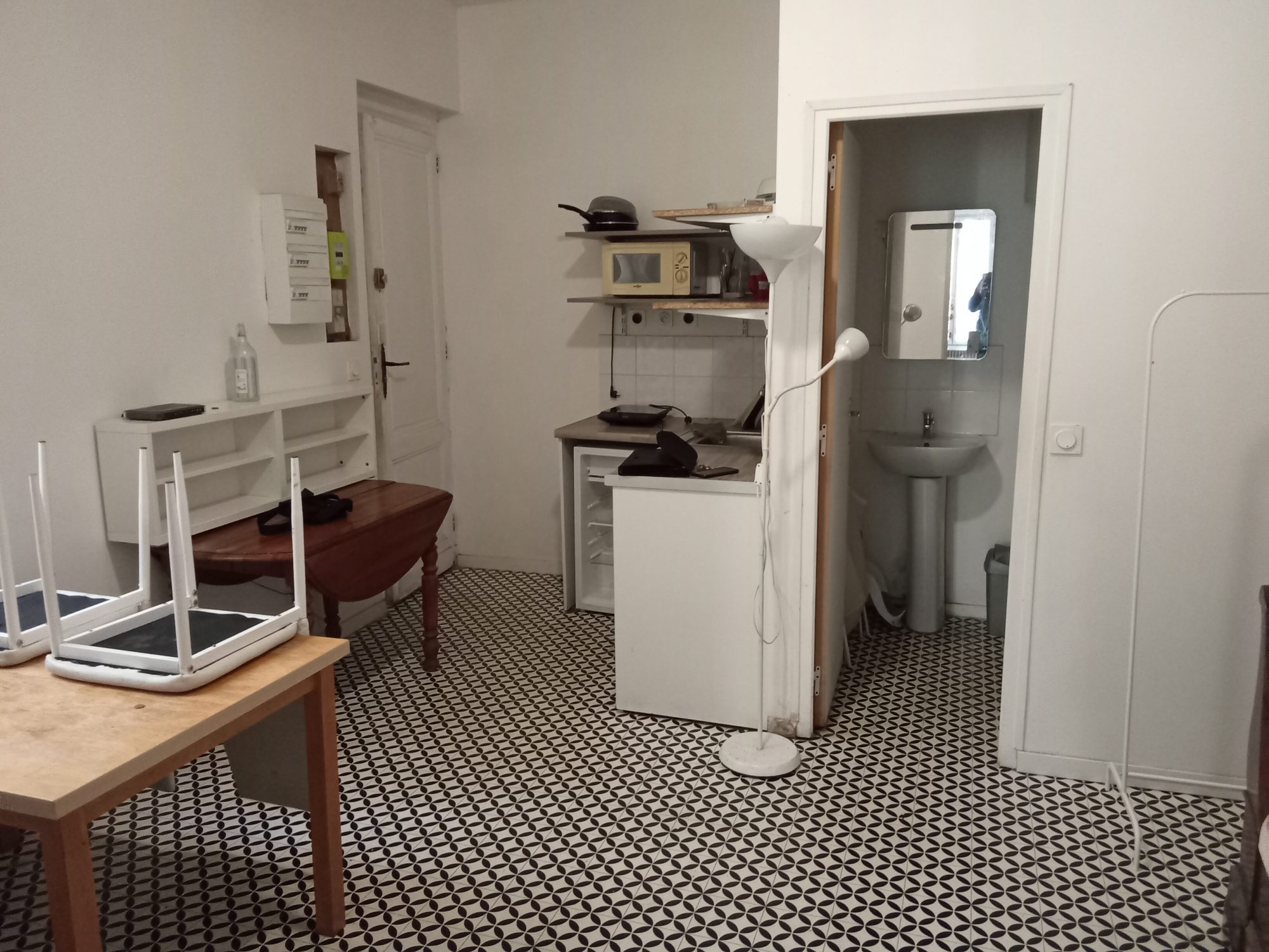 Il se compose d’un coin cuisine et salle à manger d’environ 15 mètres carrés, avec salle de bain d’environ 3 mètres carrés, puis deux chambres d’une dizaine de mètres carrés chacune.