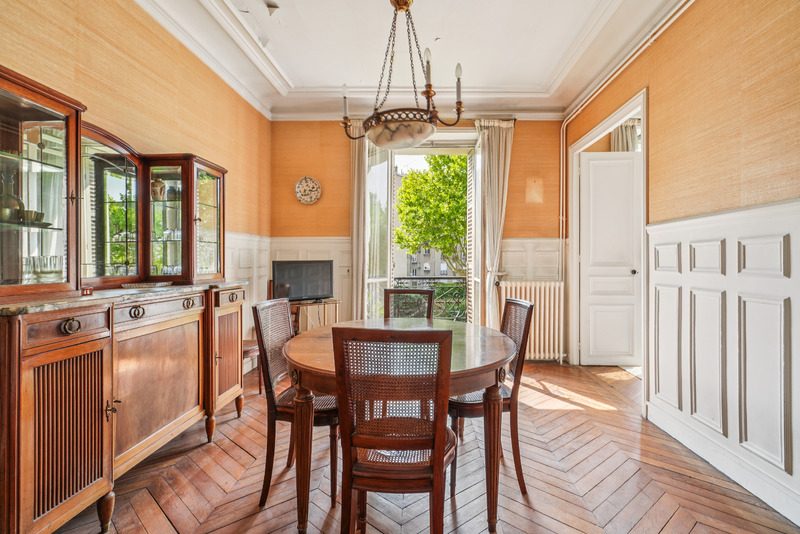 Il est situé au premier étage d’un ravissant immeuble ancien du 19ème siècle. Élégant 4 pièces d’une surface carrez de 104,49m2 comprenant une entrée galerie, une cuisine d’origine dînatoire de 10,64m2, un séjour très lumineux doté d’une cheminée prussienne exposé au Sud-Est (potentiel pour faire un double séjour), un salon avec une grande porte-fenêtre, 2 chambres spacieuses dont une chambre exposée sur des cours arborées, donne accès à un dressing, une salle de bains d’origine, un wc séparés. Portes fenêtres et fenêtres dans toutes les pièces. La hauteur sous plafond de 2,96m offre une sensation de grandeur et d’espace. Charme de l’ancien (Parquet, moulures, cheminées). L’état intérieur de l’appartement est à rénover, offrant ainsi une toile vierge pour personnaliser chaque espace selon vos goûts et vos besoins. Les parties communes quant à elles, sont en excellent état, garantissant un cadre de vie sécurisé et bien entretenu. Une grande cave de 16m2 et un débarras de 5,56m2 complètent ce bien. Cadre privilégié aux pieds du Bois de Vincennes et de Paris 12ème. Coup de cœur de l’agence pour son caractère, son charme et son ambiance. Contactez pour les visites Mme Lisa MILLER au 06 61 24 58 03.