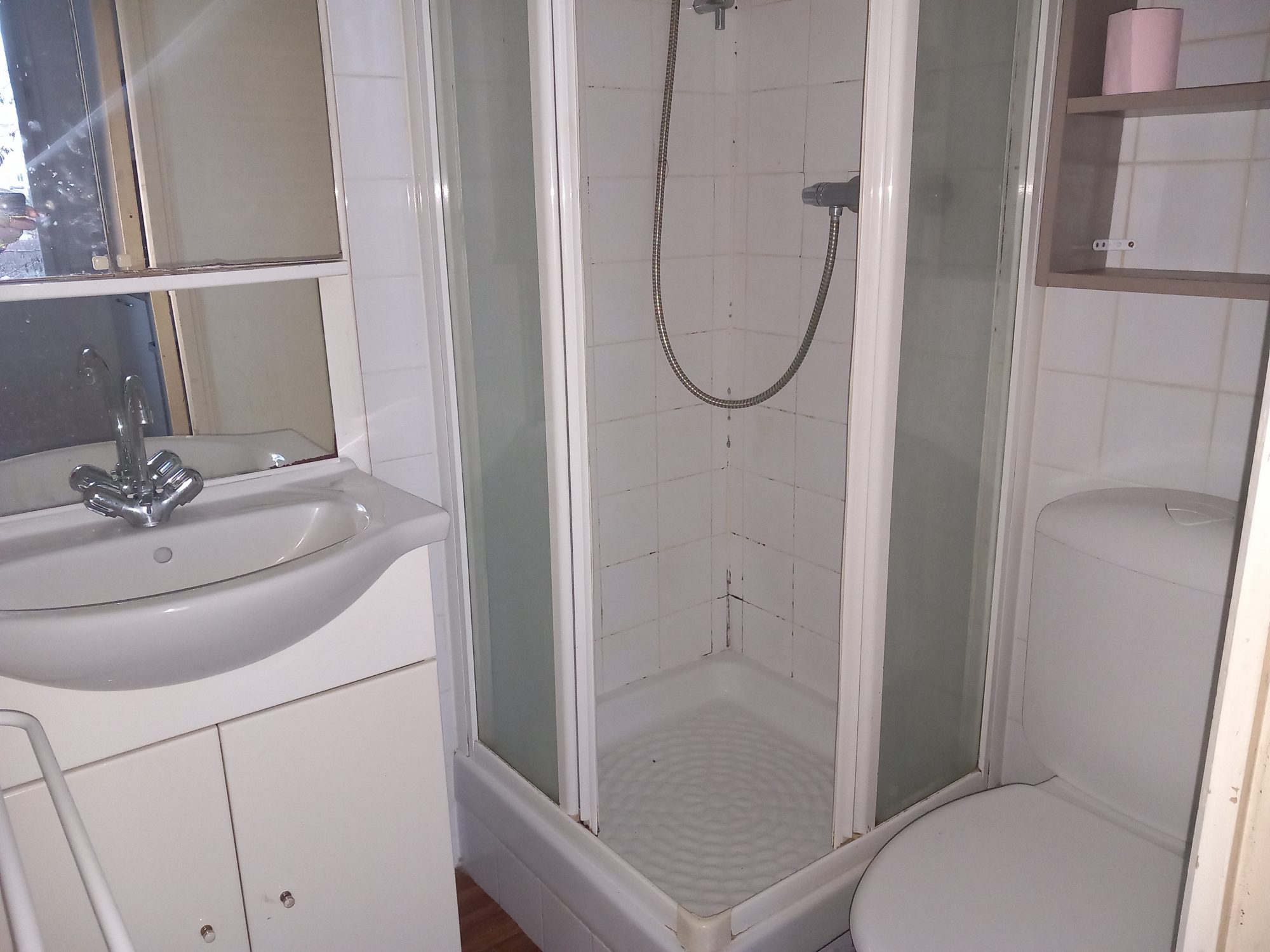 Vous y trouverez le salon en entrant, donnant sur la cuisine et la salle d’eau.
