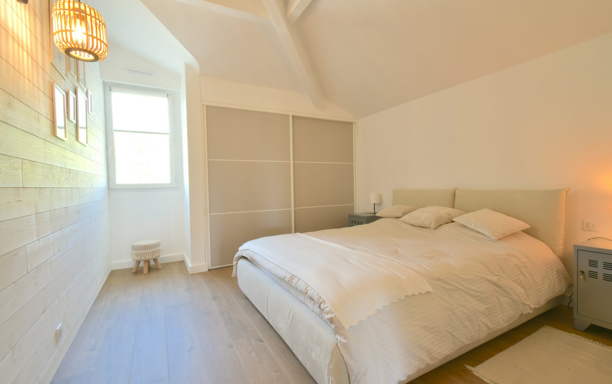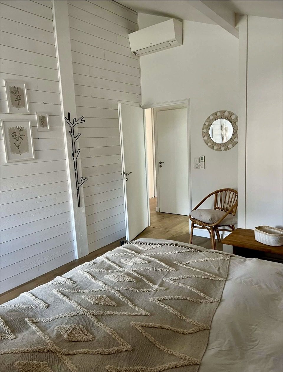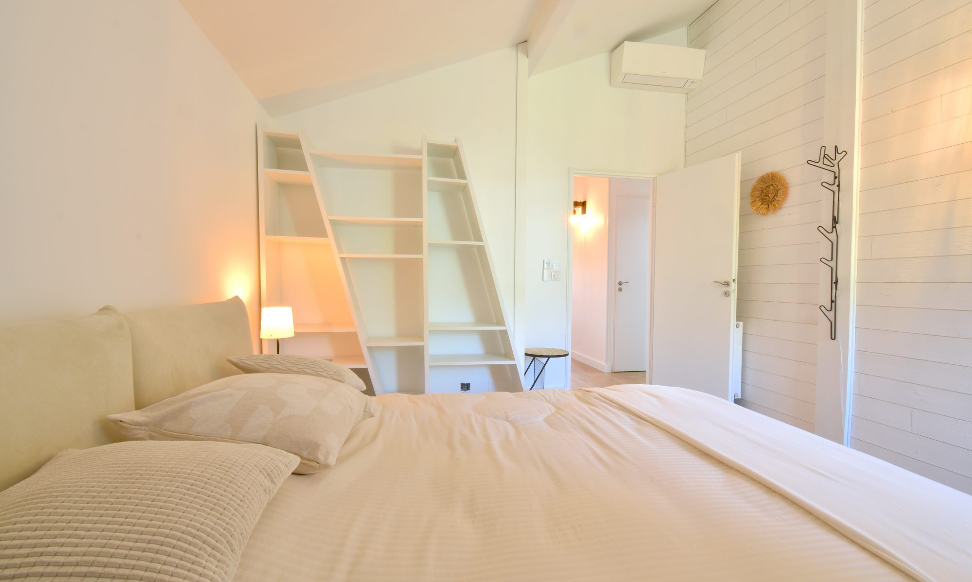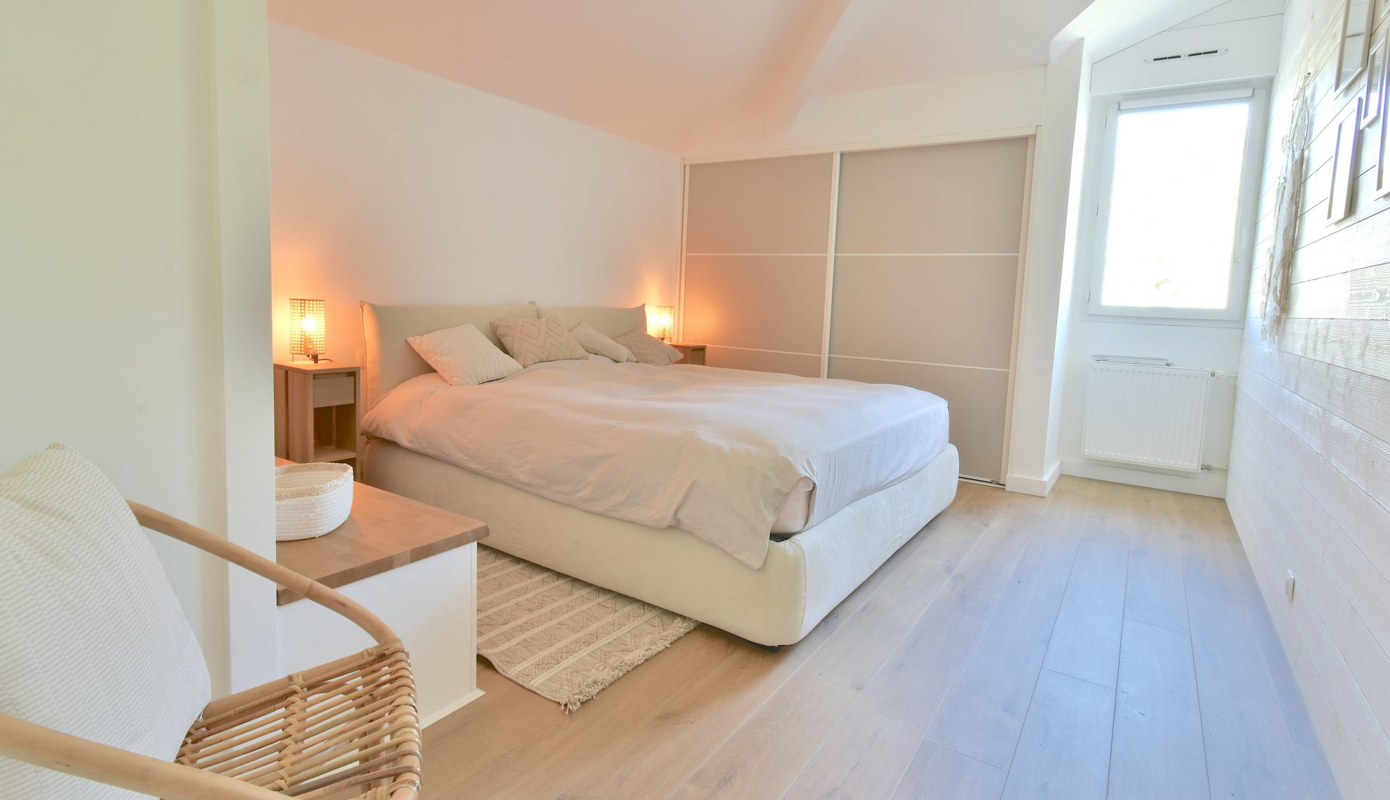 Côté nuit, les espaces sont tout aussi soignés, avec deux chambres et une salle de bain lumineuses, et une atmosphère apaisante. Le bien est équipé d’une climatisation réversible, garantissant un confort optimal en toute saison.