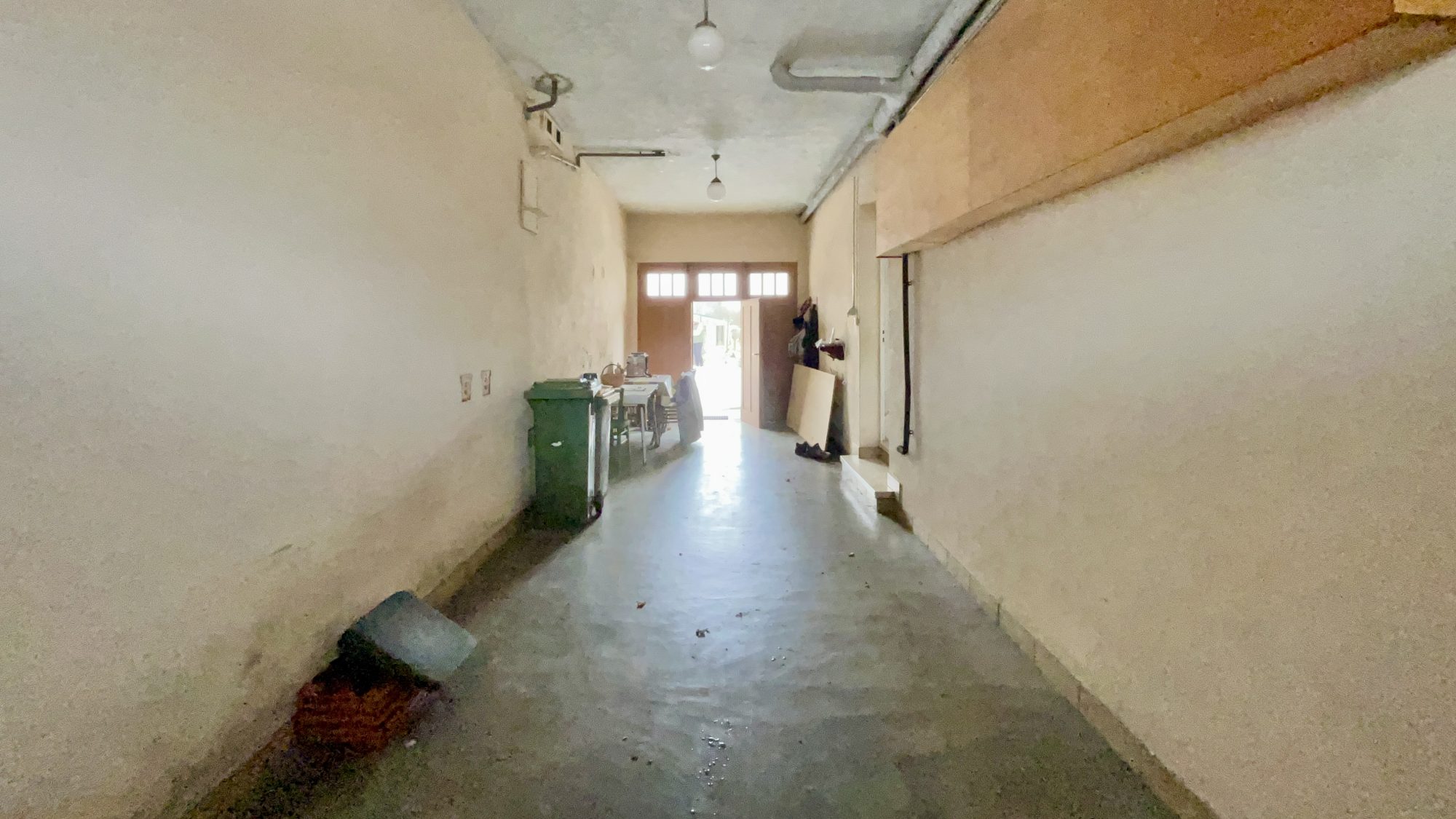 Le rez-de-chaussée se compose d’un garage traversant, d’un espace initialement prévu pour un local commercial (pouvant être transformé en garage), d’une chaufferie / buanderie et d’espaces de rangement.