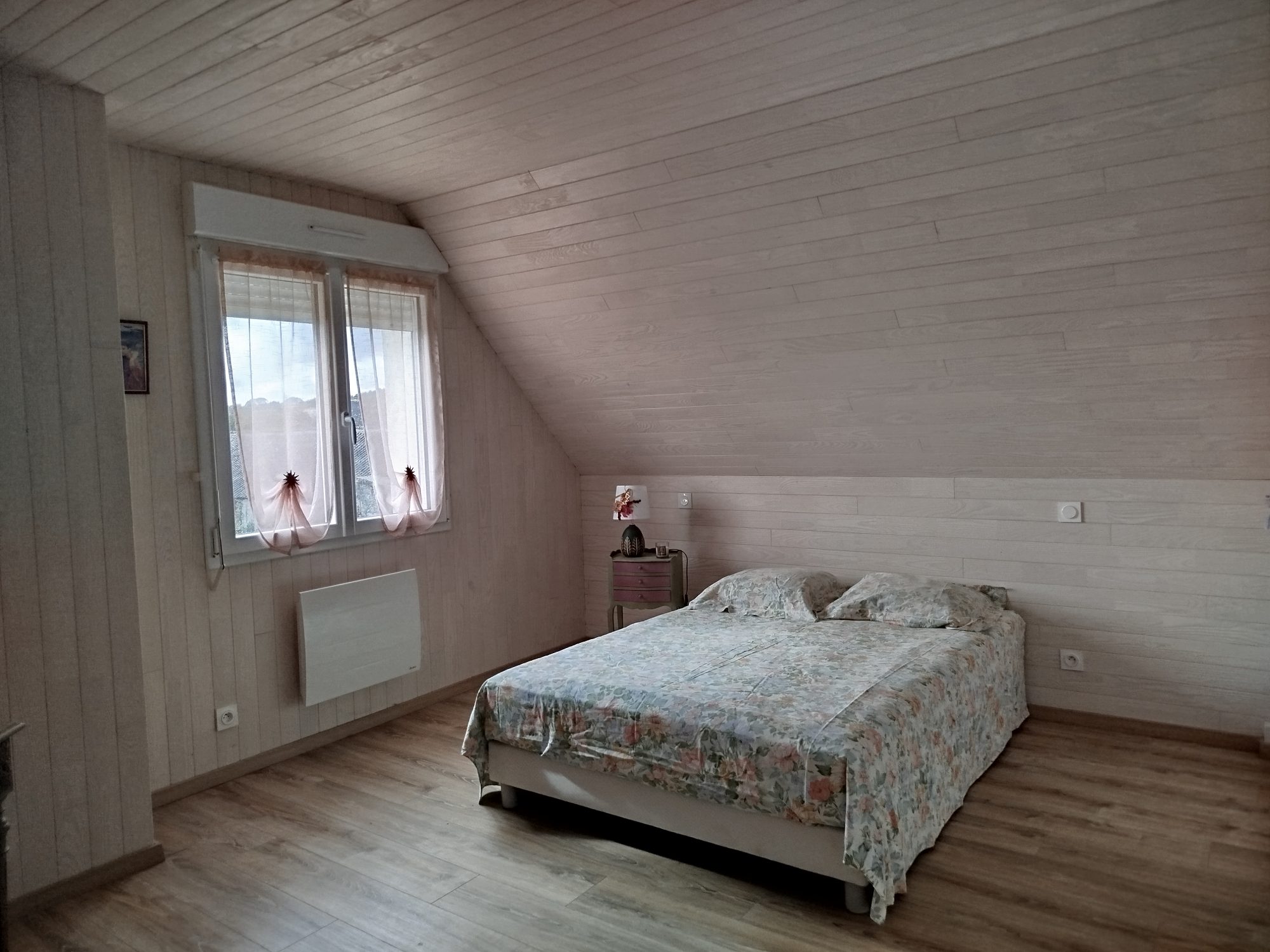 A l’étage, bureau, , une chambre et une deuxième chambre avec salle d’eau et WC, espace de rangement. Terrasse, jardin paysagé, cabanon de jardin.