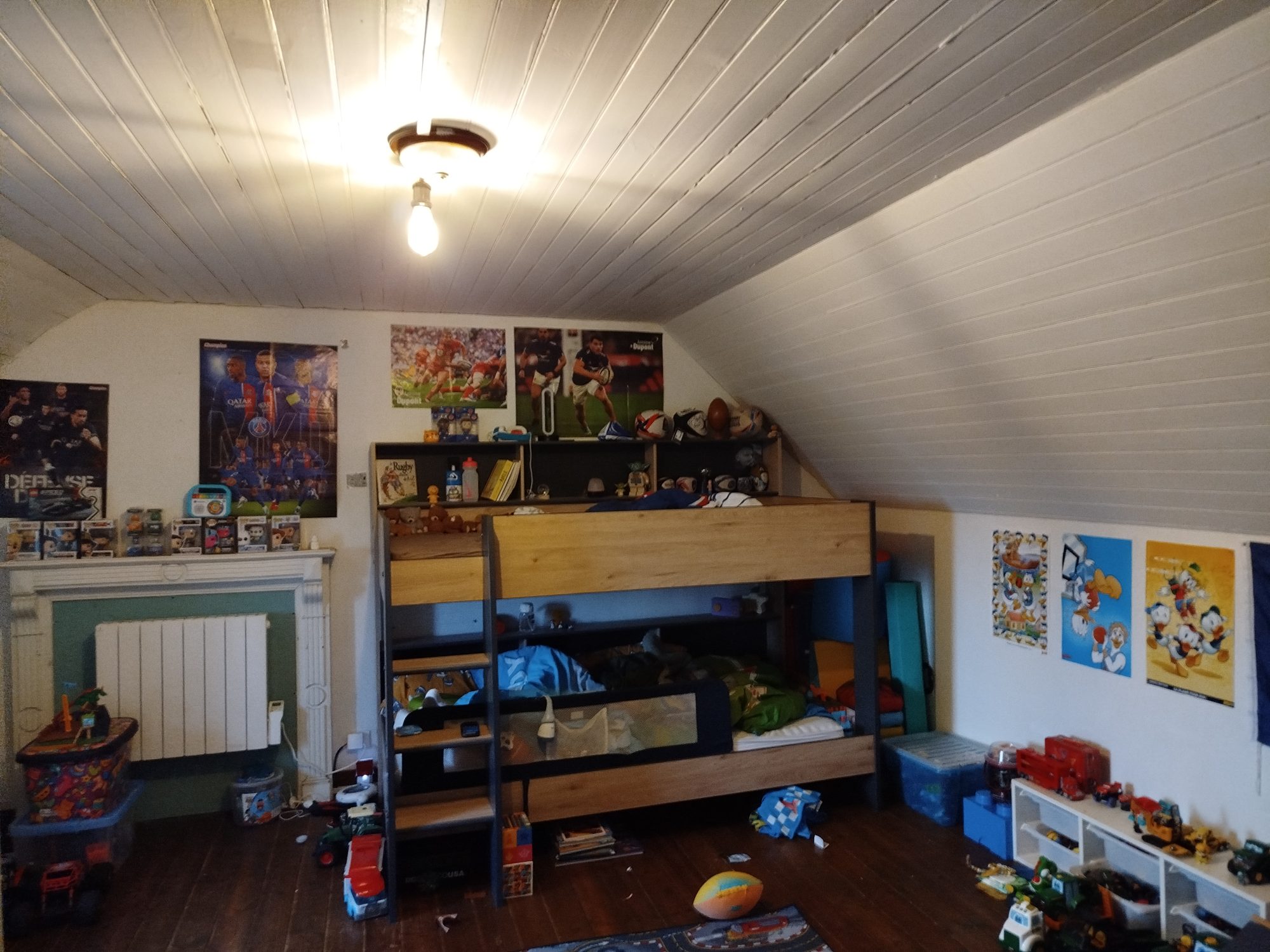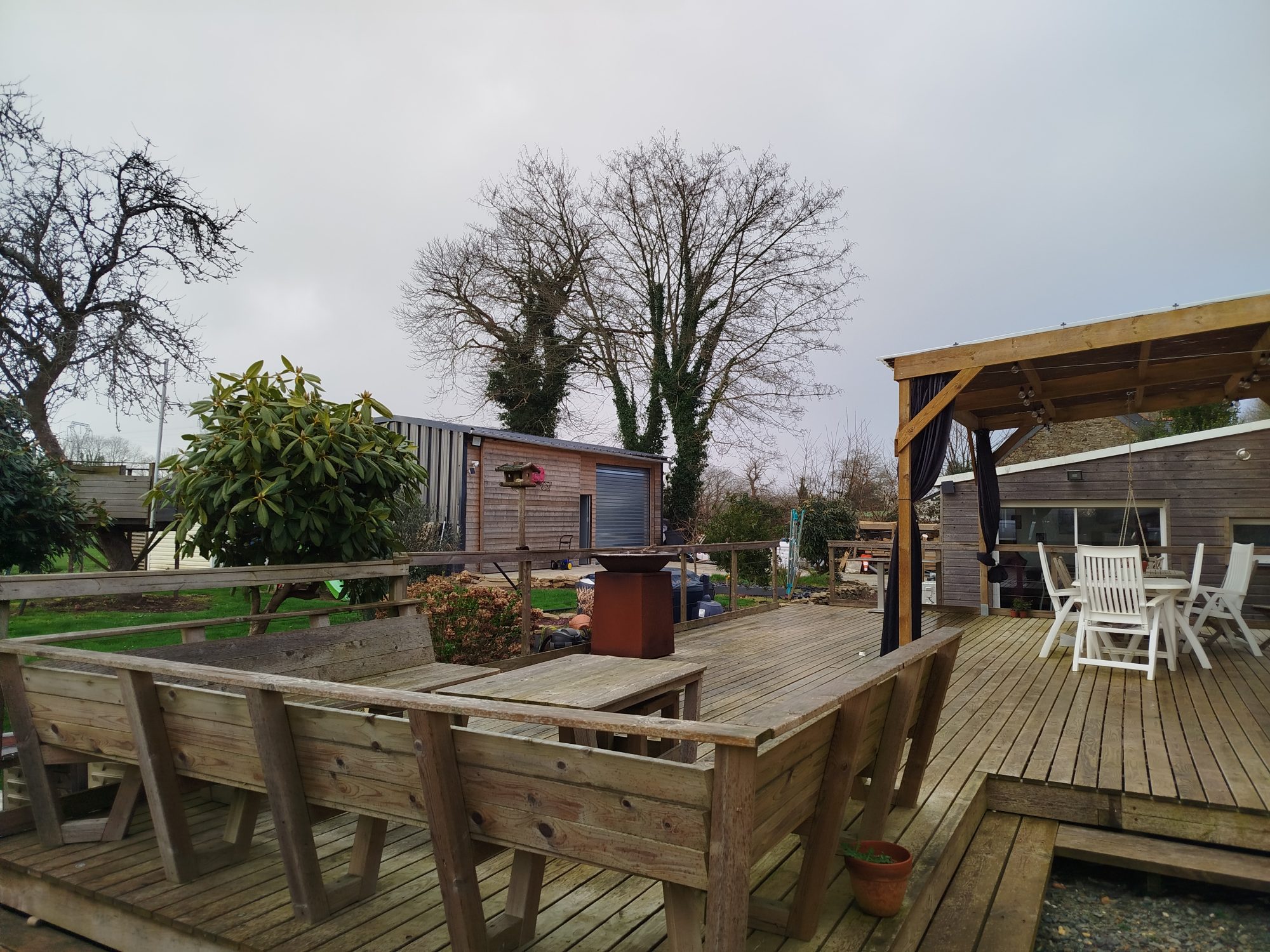 A l’étage, deux chambres et un bureau. Cave. Grande terrasse en bois accessible depuis l’espace de vie et donnant sur un grand jardin.