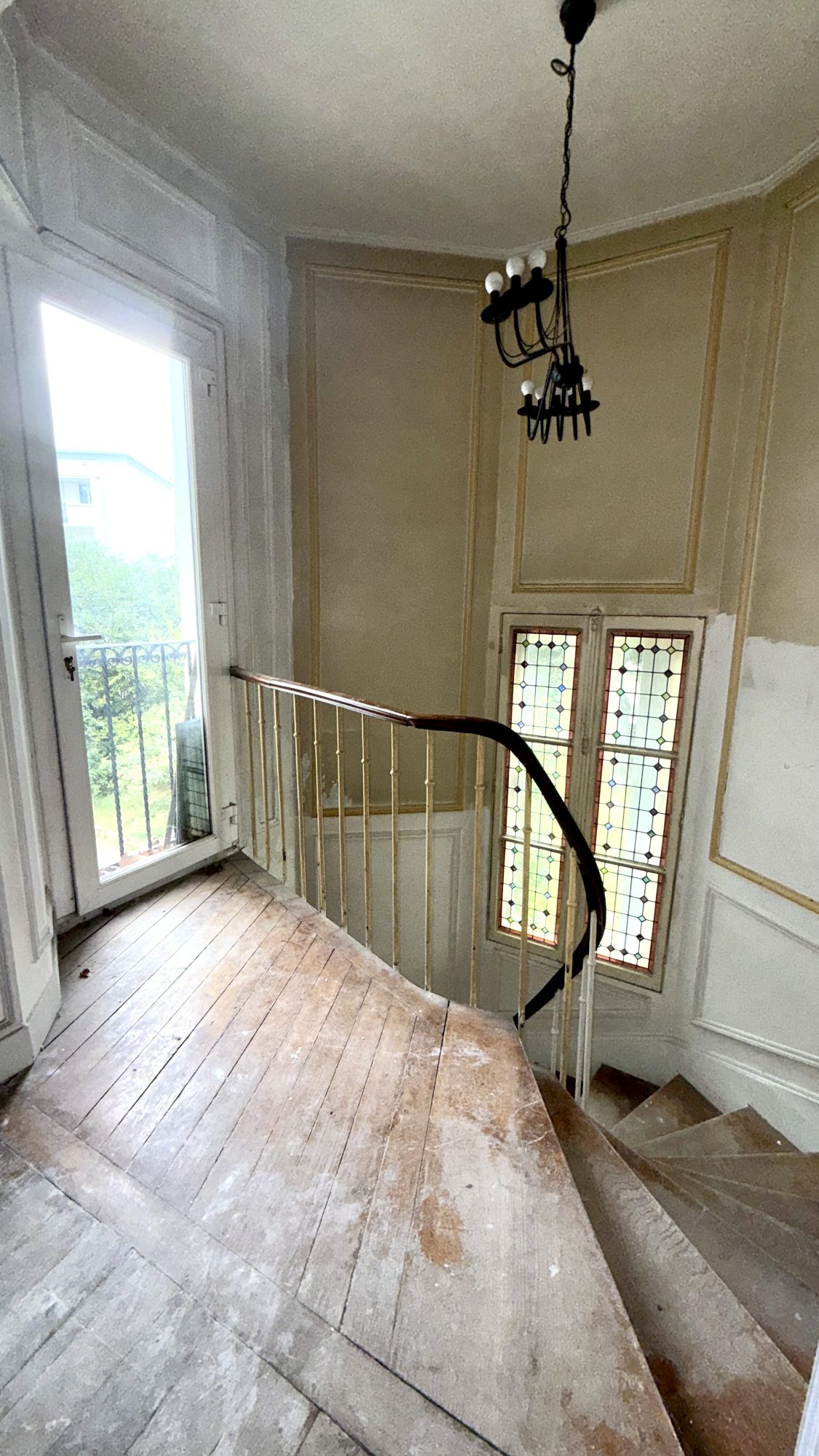 Laissez-vous séduire par cette authentique bâtisse bourgeoise du XIXème siècle divisée en 3 maisons hors copropriété; chacune avec entrées indépendantes et jardins privatifs. Vous aurez le privilège d’occuper la partie de gauche. Cette maison de 95M2 + 30 m2 de caves, pleine d’histoire vous accueille avec une magnifique porte massive donnant sur une entrée avec hauteur sous plafond exceptionnelle, escalier colimaçon d’époque et ses magnifiques vitraux colorés. Rez-de-chaussée de 34m2 à moduler à votre convenance en séjour/cuisine. Wc et accès jardin. A l’étage : Magnifique dégagement desservant 2 chambres et une salle de bains. Comble aménagé en 3eme chambre; Grenier. Jardin privatif de 193 m2. Chaufferie, 2 caves. Ravalement neuf façade avant et volets pvc. Système de chauffage Gaz. Venez rapidement découvrir ce bien à fort potentiel.
