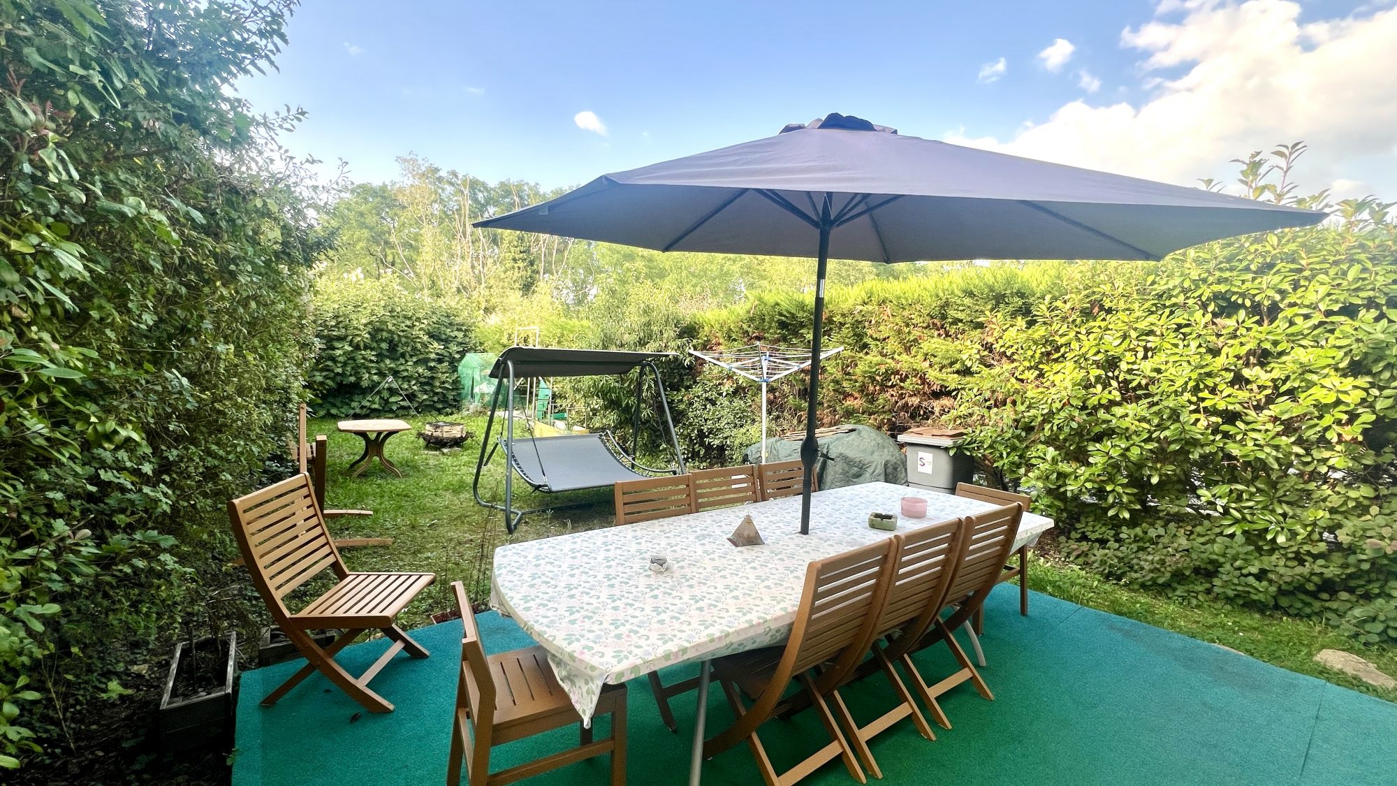 Gare à pieds. Venez découvrir cette maison individuelle idéale pour ceux qui recherchent à la fois confort, praticité et sérénité ! Construite en 2000, elle offre une surface habitable de 80 m², répartie sur deux niveaux, une cuisine aménagée et équipée, un séjour spacieux et lumineux de 30 m² qui invite à la convivialité et à la détente donnant avec un accès direct à une terrasse et à un jardin sans vis-à-vis parfait pour profiter de la nature aux portes de la forêt. Les 5 pièces, dont 3 chambres dont une avec dressing, sont baignées de lumière naturelle, créant une atmosphère chaleureuse et accueillante. La salle de douche et les 2 WC, dont un indépendant, garantissant confort et intimité. Vous souhaitez vivre dans cette maison, entourée de verdure et de tranquillité, tout en étant proche de toutes les commodités. En effet, à seulement 10 minutes à pied, vous trouverez une crèche, une alimentation générale et un bus, facilitant ainsi votre quotidien. De plus, à 10 minutes en voiture, vous accéderez à 4 collèges. Le stationnement est également facilité avec 1 place de parking intérieure et 4 places extérieures. Le quartier est prisé pour sa proximité immédiate des écoles, commerces, et son accès rapide à l’A13, tout en offrant un environnement paisible.