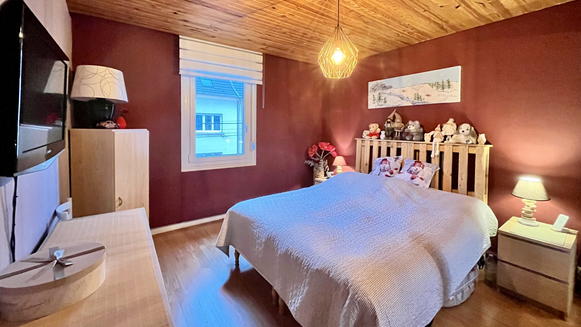 A l’étage : 2 Grandes Chambres une salle de douche avec wc et un coin bureau avec possibilité de créer une 3 ème chambre.