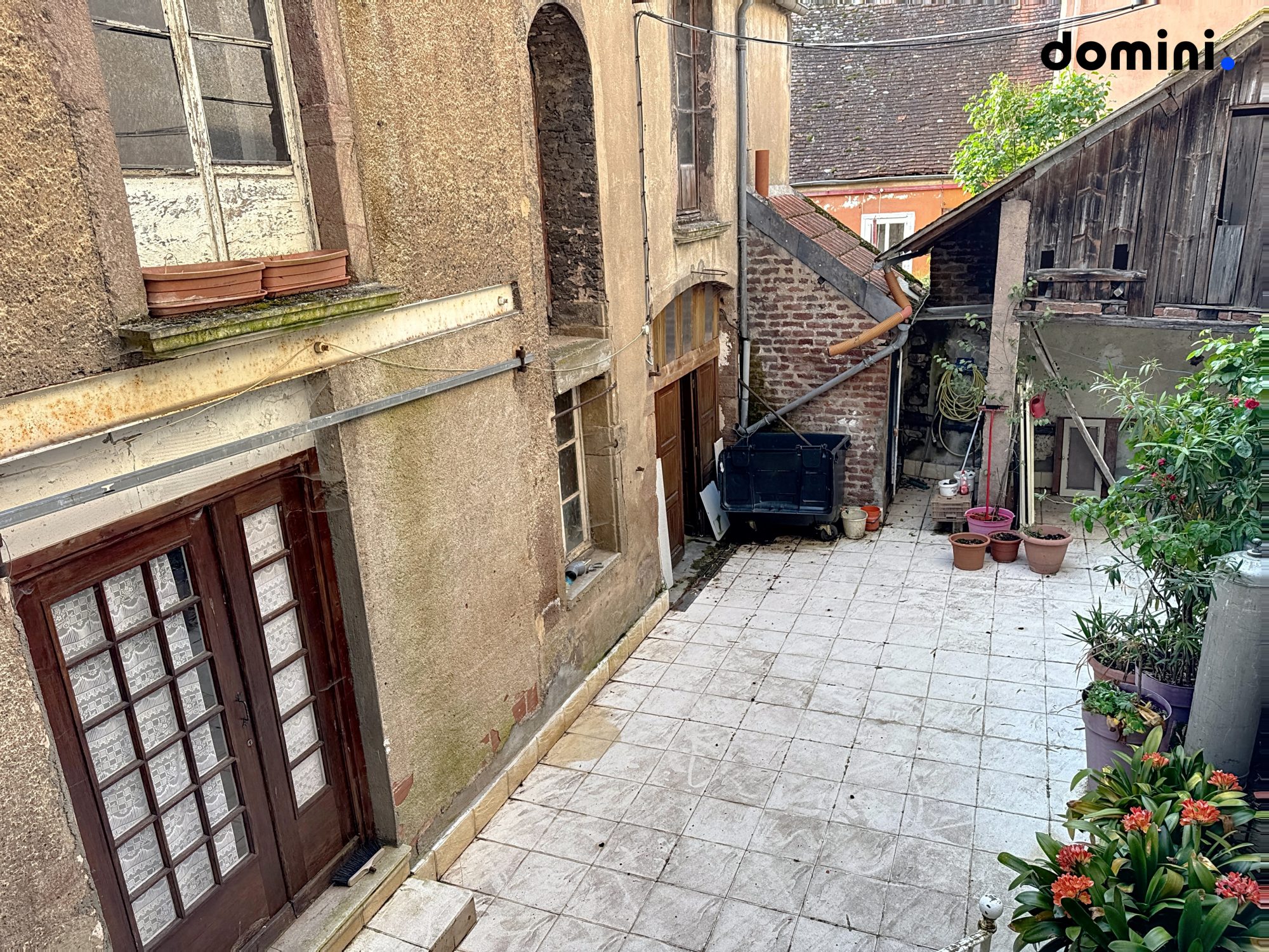 Dépendance exceptionnelle : À l’arrière, une structure de 200 m² sur deux niveaux avec garage. Un volume rare en plein centre, idéal pour un atelier, du stockage ou une réhabilitation en lofts.